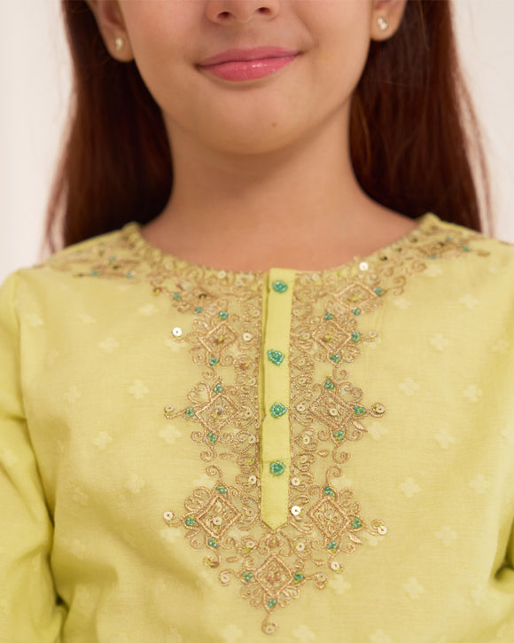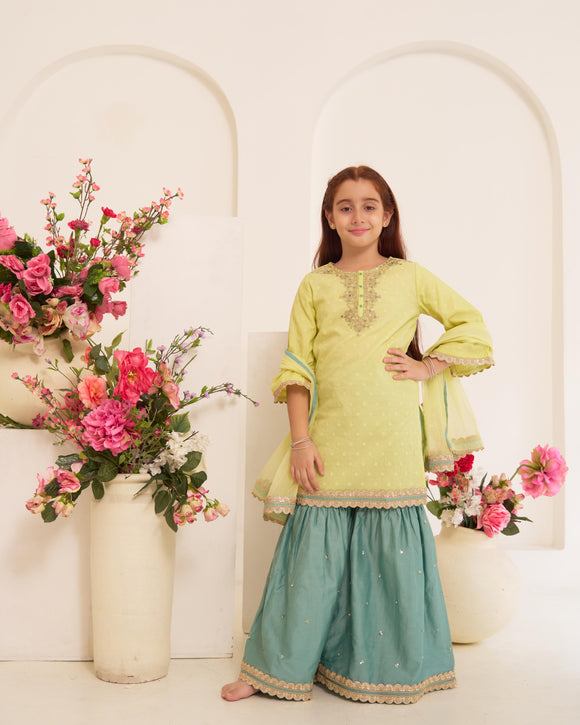 LIME GREEN KURTA WITH AQUA SHARARA SET