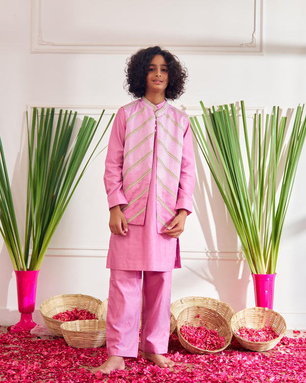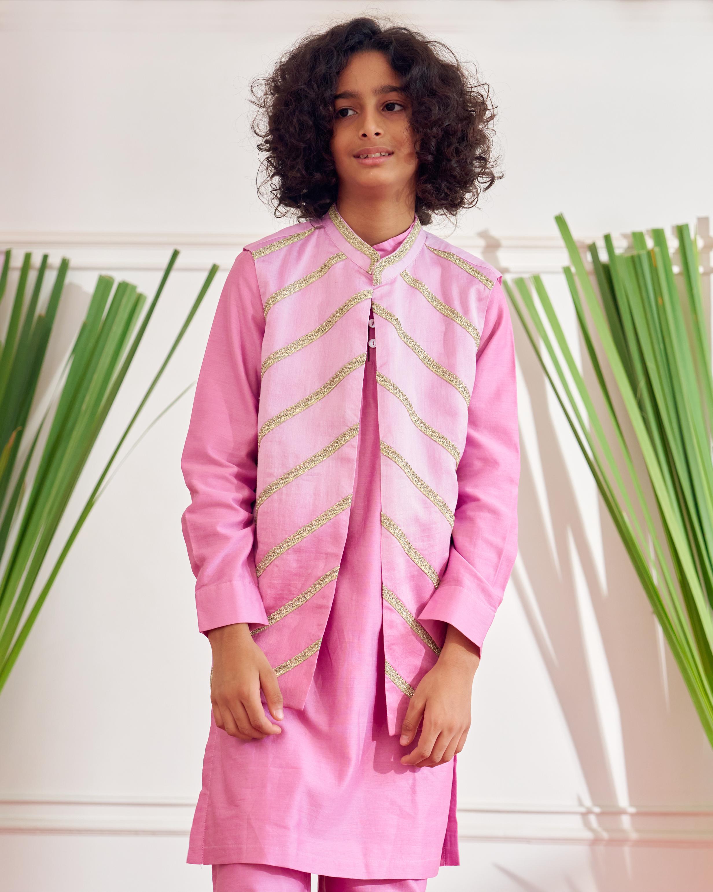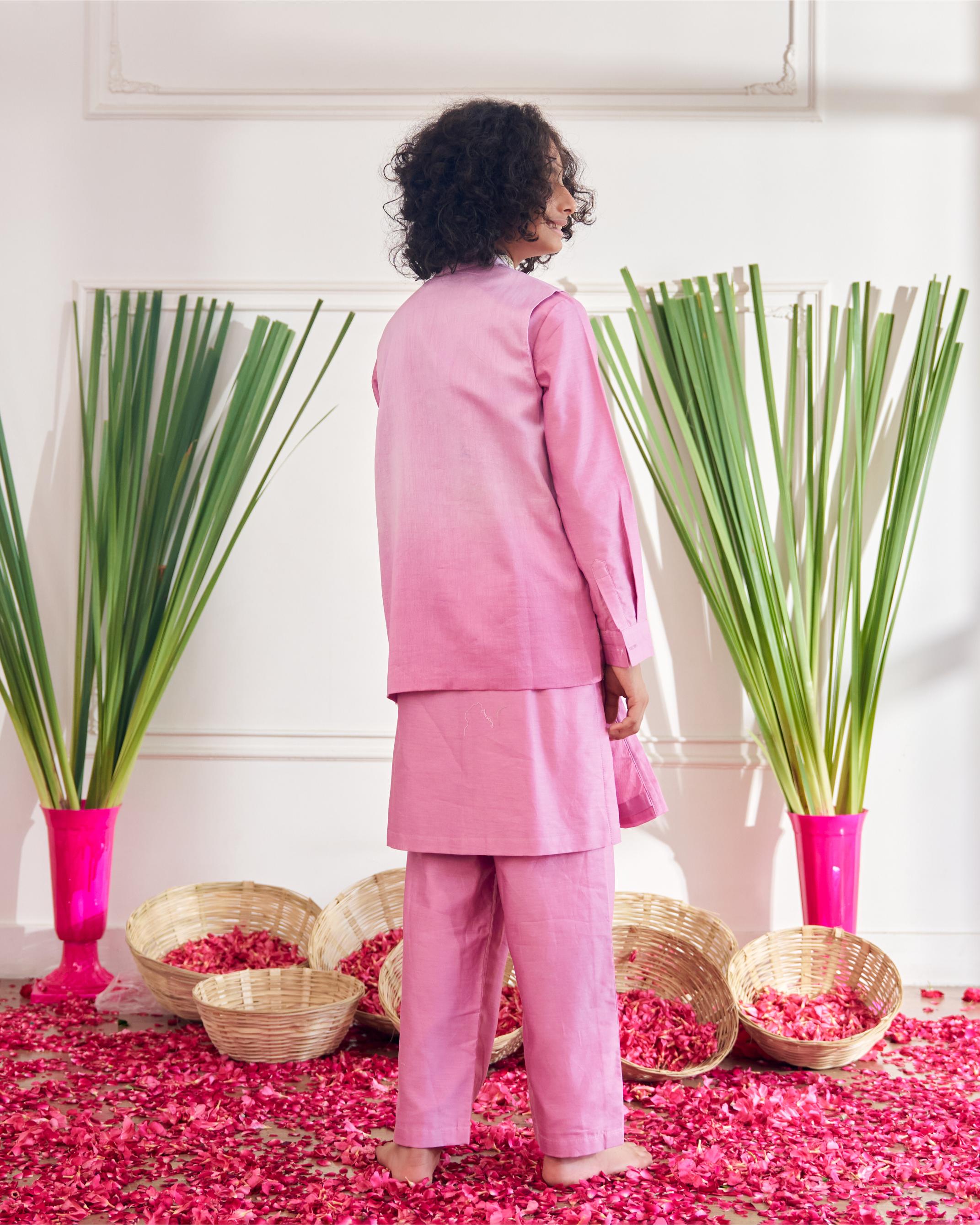 SOLID KURTA SET WITH OMBRE EMBELLISHED JACKET