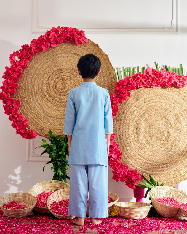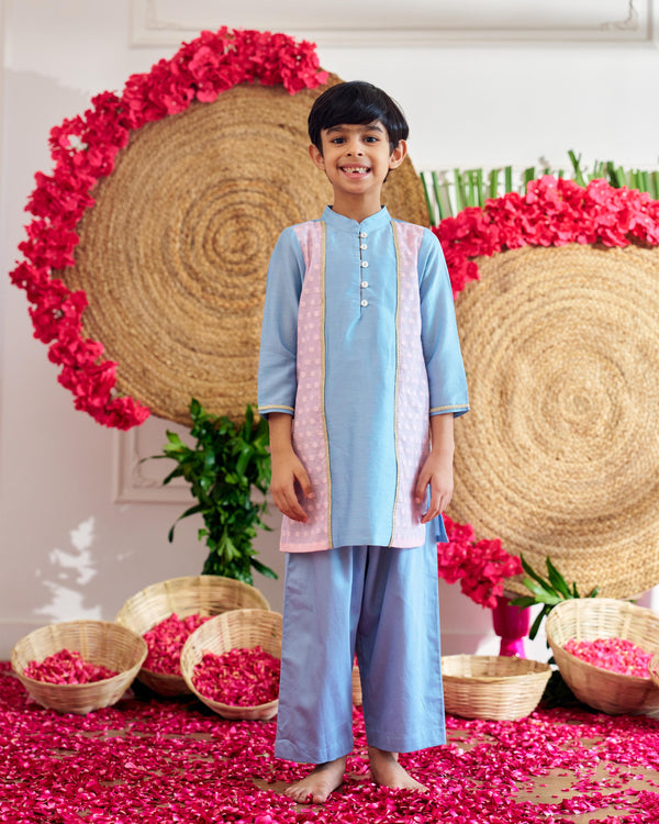 STRIPER APPLIQUE KURTA WITH WIDE LEG SALWAR